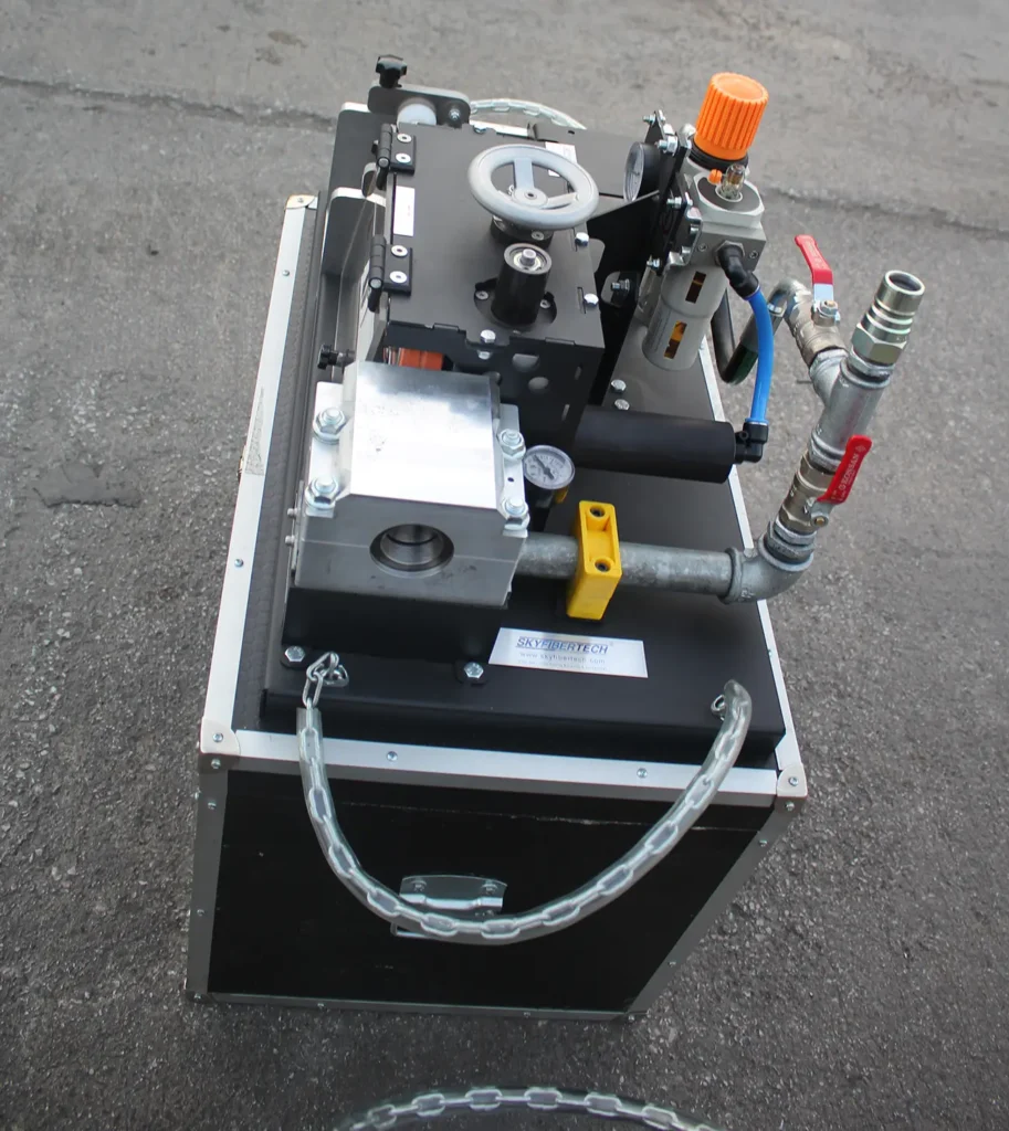 MiniSKY fiber blowing machines is a machine used to blow fiber optic cables into HDPE pipes.