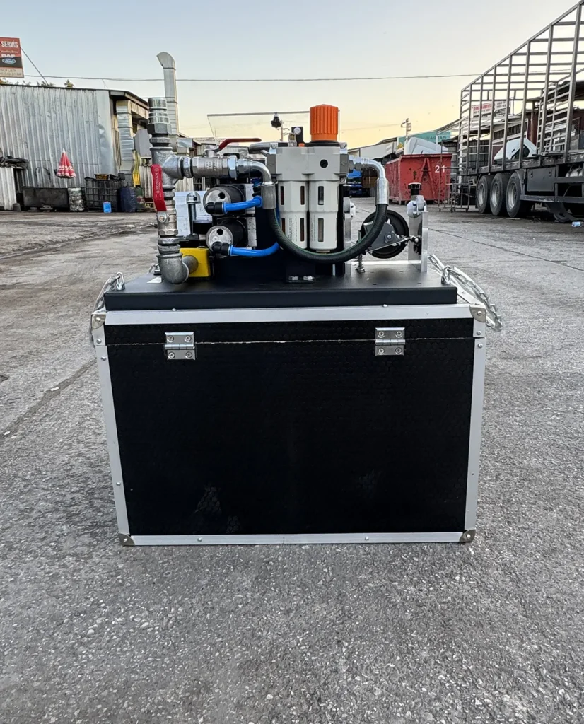 The recommended minimum amount of air is 12 bar and 1m ^ 3 (this amount decreases or increases depending on the Cable and Pipe diameter) and is compatible with all air compressors. All necessary connection adapters are provided with the machine.